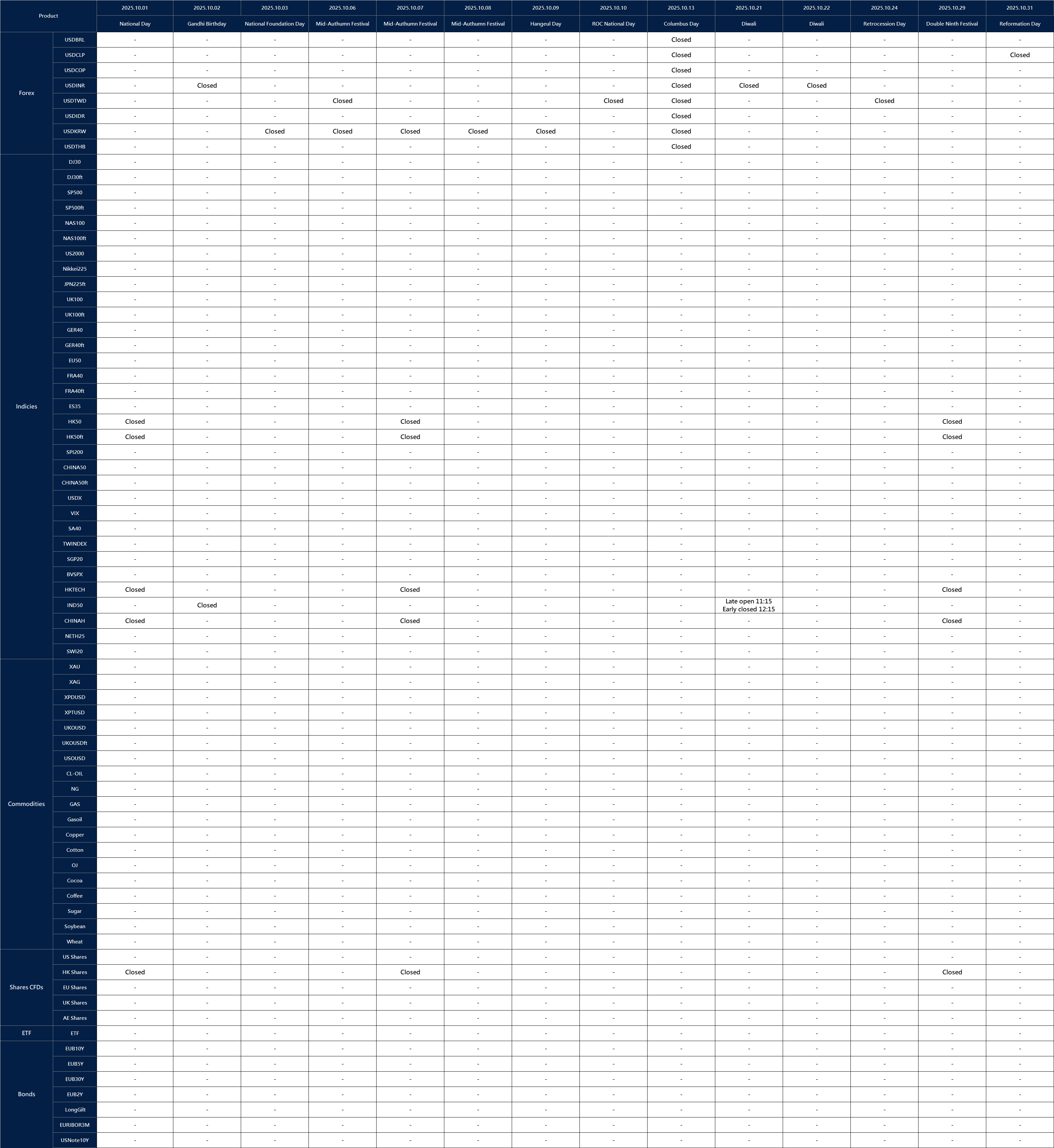 Affected by international holidays, the trading hours of some VT Markets products will be adjusted. Please check the following link for the affected products: